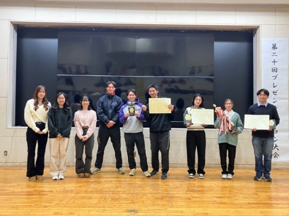 今回のプレゼン大会は、第1部・第2部ともにゼミ活動で関心を持ち、取り組んだ事項を元に自由にテーマ設定をしました。ゼミ内で同じテーマに関心のある学生がグループをつくり挑戦する形、ゼミ内の個人発表で評価の高い発表の発表者が代表出場する形など、ゼミによって取り組み方は異なりますが、ゼミのメンバーの発表を応援し、表彰まで見届けにくる学生も多くいました。他のゼミや学生の面白い取り組みや研究の視点にふれ、刺激を受けた学生も多かったのではないかと思います。