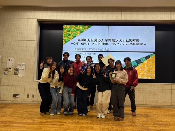 菅野日愛凛さん、ド ラム フォンリンさん(太田ゼミ) 「鬼滅の刃に見る人材育成システムの考察 OJT,OFFJT,メンター制度,コンピテンシーの視点から」