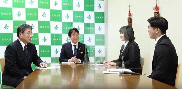 2021年11月24日(水) 共栄大学のキャリア教育プログラムイベント「第5回共栄シンポジウム」に 埼玉県教育局 市町村支援部長 石井宏明氏をお招きし「今、求められている人財育成」をテーマに教育学部学部長 濱本一教授、教育学部3年生と対談を行いました。