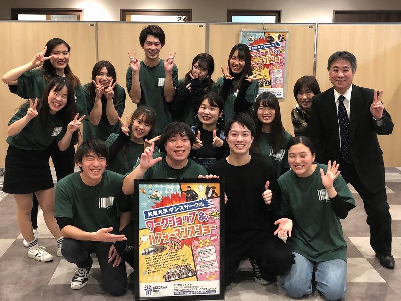 共栄大学ダンスサークル(代表:教育学部3年小林滉仁)がJR高崎線桶川駅にあるおけがわマイン3F「OKEGAWA honプラス+イベントスペース」にてワークショップ&パフォーマンスショーを開催しました。